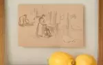 Cette rare œuvre de jeunesse de l'artiste est attendrissante. Elle témoigne d'une intimité domestique pleine de douceur. Elle montre aussi le tempérament de l'artiste, son attachement aux détails, son souci de noter avec justesse les formes et les attitudes. Son coup de pinceau est aussi reconnaissable, avec sa manière souple d'appliquer les teintes. On est captivé par le pouvoir évocateur de cette étude et de la souplesse de sa technique.