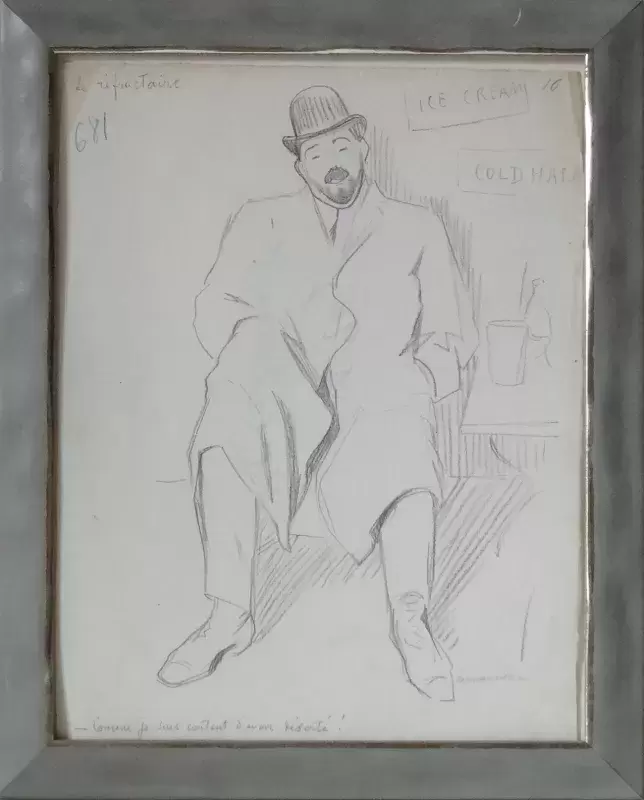 Signé au crayon en bas à droite, "Comme je suis content d'avoir déserté!", numérté au crayon bleu en haut à gauche et au verso