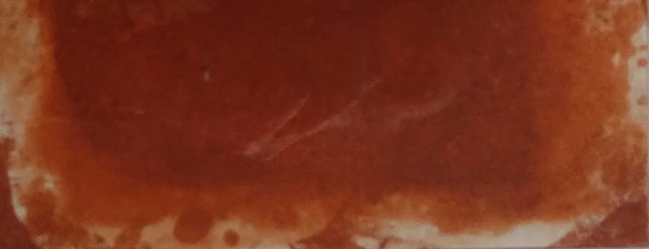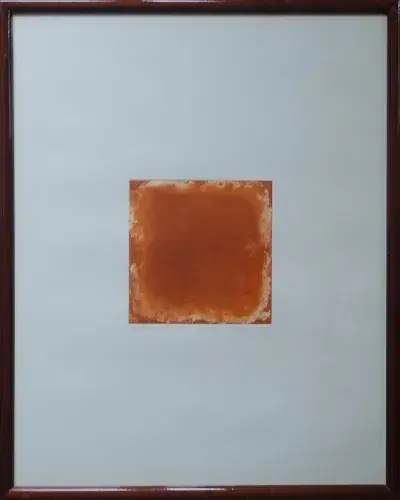 Ce travail de Graubner se développe autour de la couleur ocre rouge. L'artiste a composé dans un carré presque parfait un jeu de dégradés et de camaïeux composé à partir de cette teinte chaude et terrestre. Les teintes les plus claires s'étendent près des bords, tandis que vers le centre, la teinte principale prend toute son ampleur, pour parvenir à la pureté au milieu géométrique du carré. Graubner utilise de manière quasi-hypnotique les variantes de sa teinte principale, éclaircissant son thème en vagues et vaguelettes qui palpitent autour d'un cœur intense dans lequel le regard se perd.